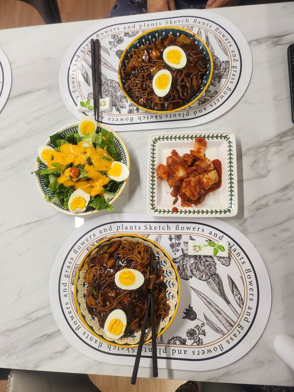 짜장면 감자 넣고 파만 넣어서 먹었는데 정말 맛있습니다