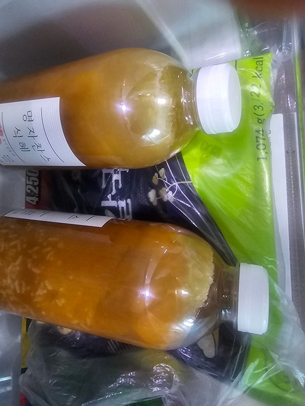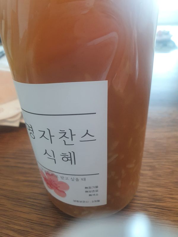 500ml짜리로 주문해서 먹다가 900ml주문해서 먹었는데 이번에 호박농도가 조금 찐해서 그런지 식혜 느낌보단 목넘김이 되직한 느낌이네요.