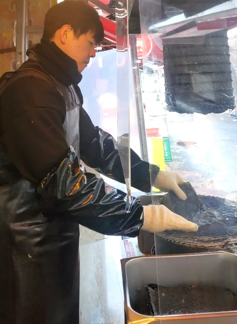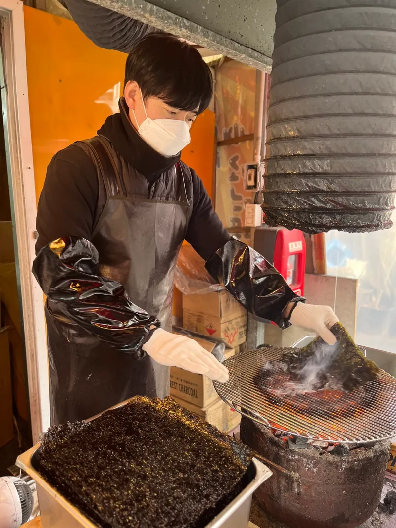 1000℃ 넘는 높은 온도의 숯불에서 15번 이상 김을 구웠습니다. 김에서 불향이 솔솔~ 인위적인 맛이 아닌 직접 수작업으로 구워서 만들어낸 자연의 맛입니다.