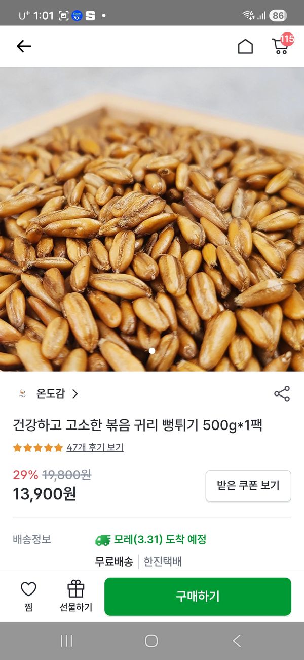 옵션: 볶음 귀리 뻥튀기 500g*1팩