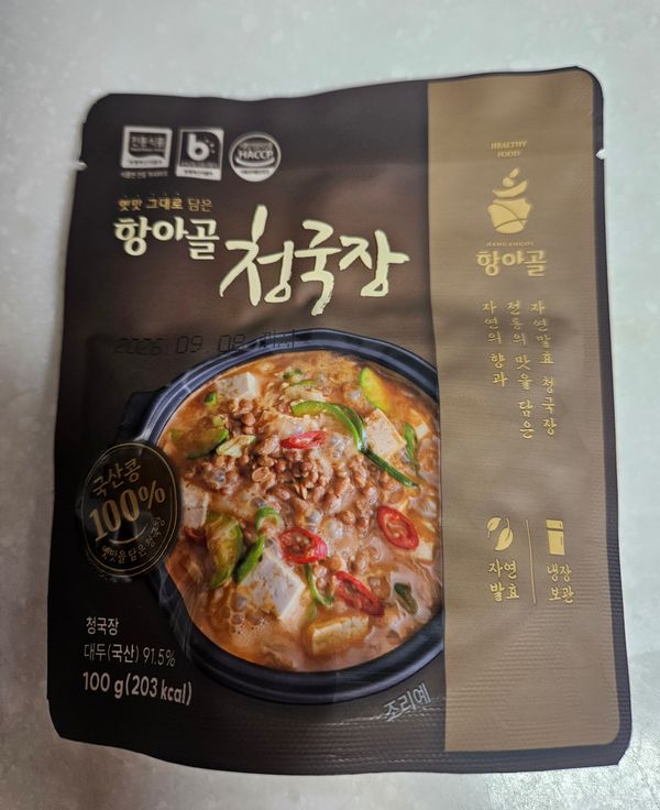 재주문한거예요. 양도 적당하고 맛도좋아요 청국장 특유의 냄새도 거의없고 구수한맛은 좋아요.