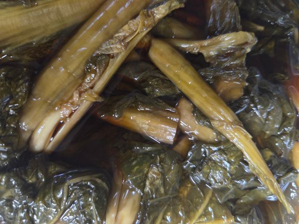 갓 특유의 냄새와 맛이 새콤한 맛과 어우러진 맛있는 피클이네요 모양새는 우거지 같이 생겼는데 하나도 질기지 않고 아삭하기도 하네요 족발 먹을때 곁들여 먹으니 잘 어울렸어요 밥반찬로도 좋아요