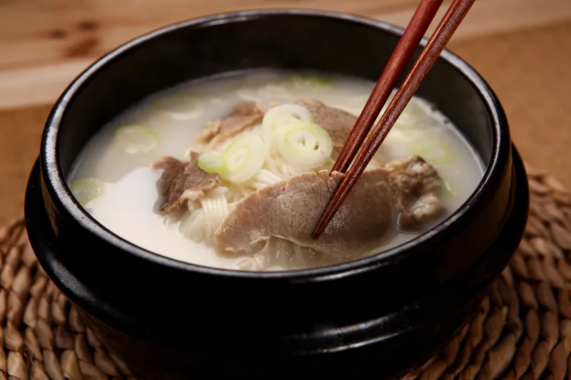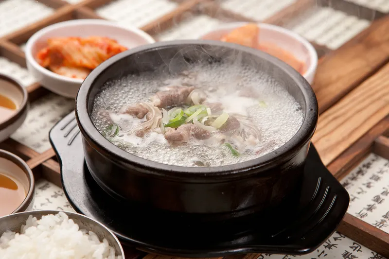 쇠고기와 소도가니추출액으로 진하면서 담백한 국물이 일품인 곰탕이에요. 깔끔한 국물과는 달리 깊고 진한 맛을 내는 반전 매력이 있죠. 갓 지은 밥과 함께 먹으면 든든하게 속을 채울 수 있습니다.