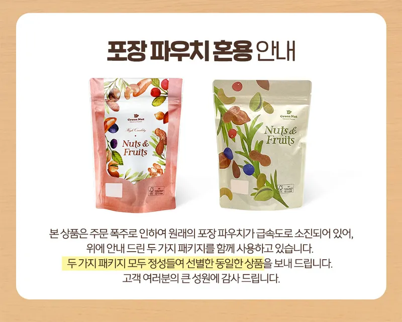 보관이 유용한 지퍼백에 담아 보내드립니다. 원하는 만큼 드신 뒤에 지퍼백으로 밀봉하여 상품의 산패 및 눅눅함을 줄일 수 있습니다.