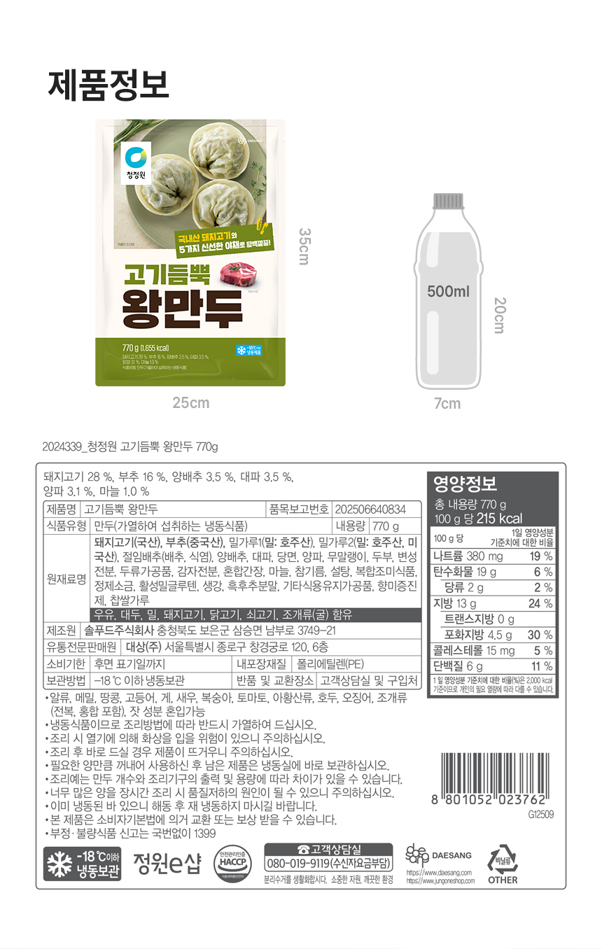 (G)청정원 고기듬뿍왕만두 3개 골라담기+(증정)떡국떡 400g