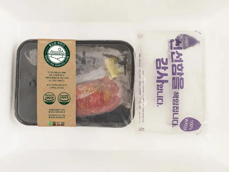 제품은 냉동 상태로 신선도를 유지해 주는 스킨포장 후 아이스박스에 아이스팩을 동봉해 안전하게 배송됩니다.
