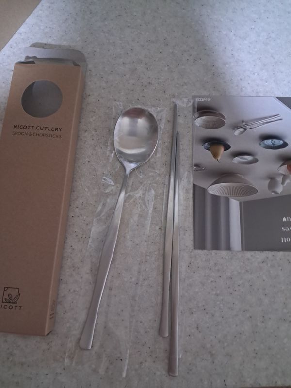 수저 세트가 단아한 느낌이 나고 예쁘다는 생각이예요. 적당한 굴곡이 있어서 매끄럽고 사용하기에 좋군요. 무게감은 사용했던 수저보다 조금 묵직해서 튼튼한 것 같아요.