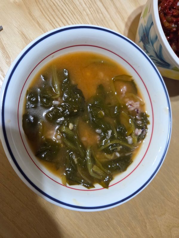 근대양도 많고 맛있어요. 된장이 아니라 쌈장맛이 좀 나긴하는데 묘하게 맛있어요ㅋㅋ 조금 짜서 전 물 좀 더 넣었는데 근대양이 많아서인지 괜찮더라구요