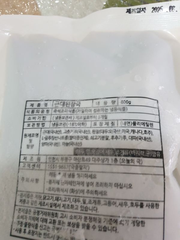 냉동 숙성된 국을 끓이는 과정에서 수분이 날아가 간이 조금 짜질 수 있습니다. 따라서 개인의 기호에 맞게 물을 추가하여 간을 조절하시기를 권장합니다.