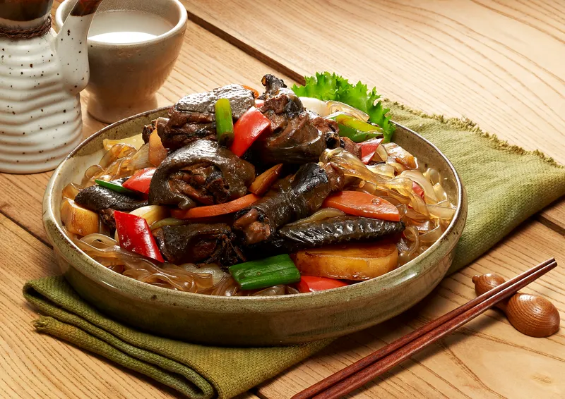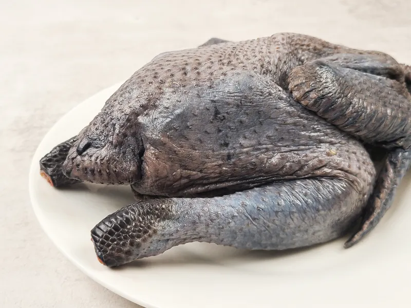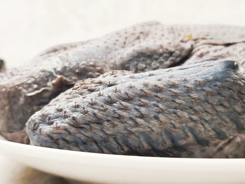 오골계는 살과 뼈가 모두 거뭇한 것이 특징인 닭이에요. 식감이 더욱 쫄깃쫄깃하며, 지방이 적고 단백질 함량이 높아 예로부터 보양식 재료로 많이 활용되었죠. 고단백 식재료로 아주 제격이에요~!