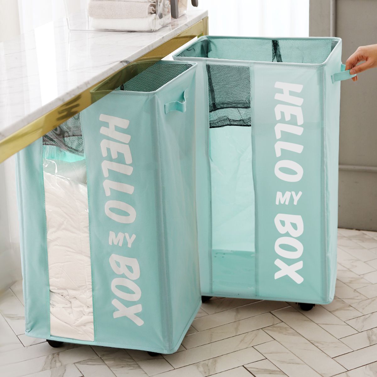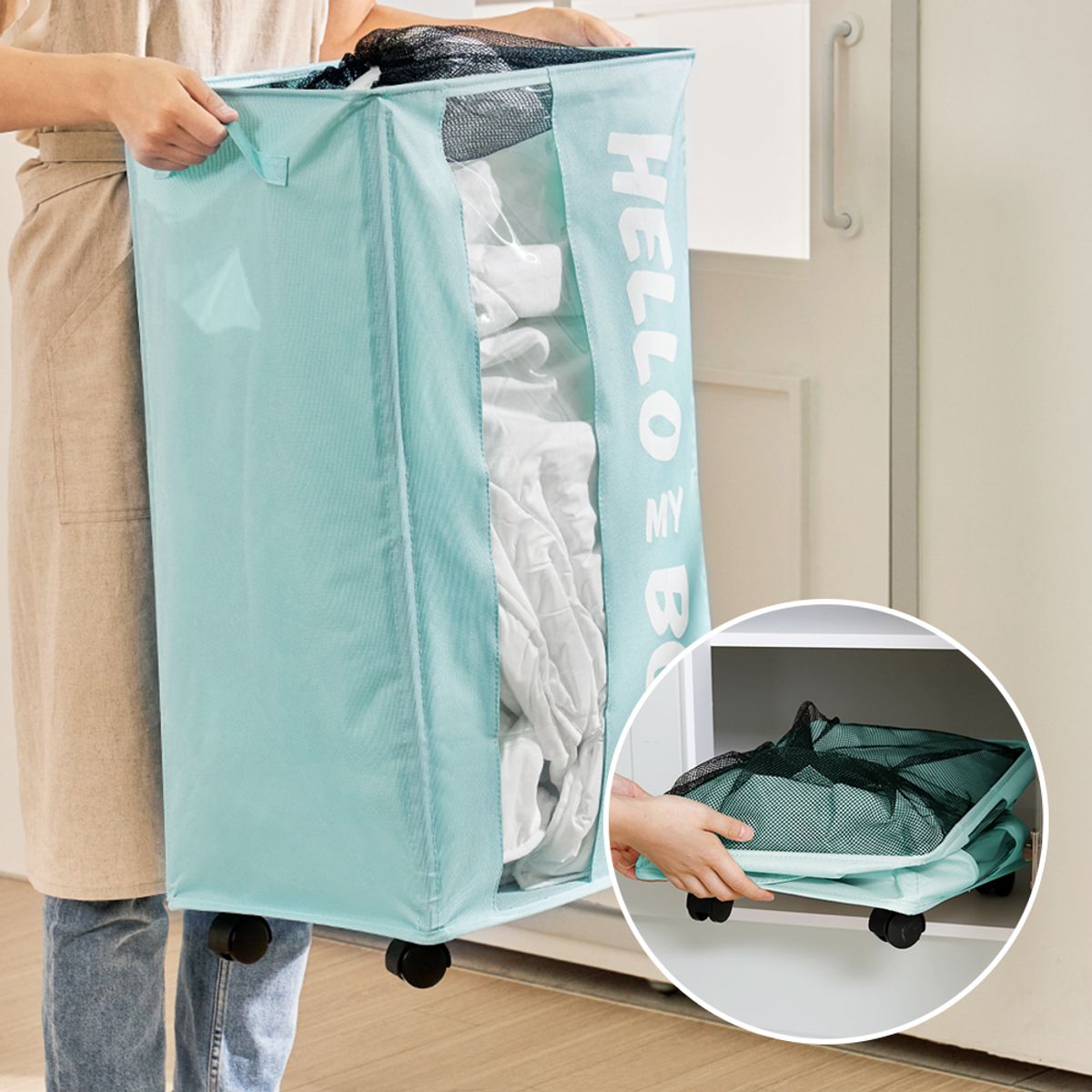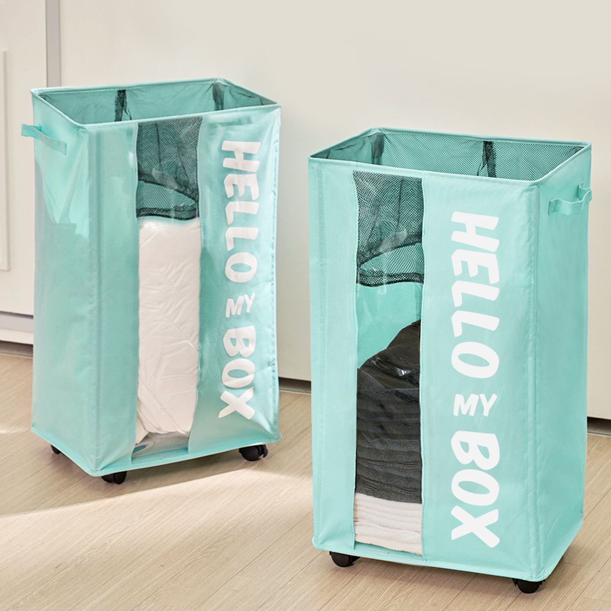 바퀴 달린 다용도 접이식 패브릭 수납정리함 바구니 90L