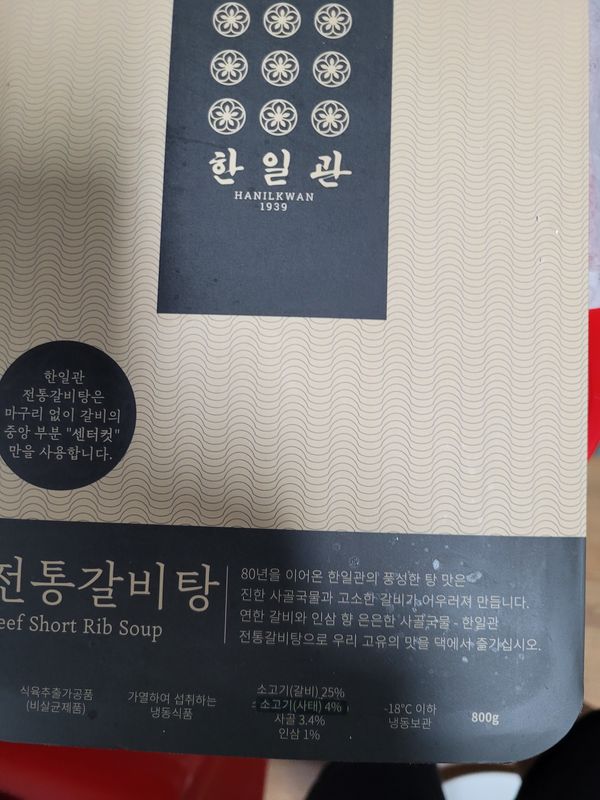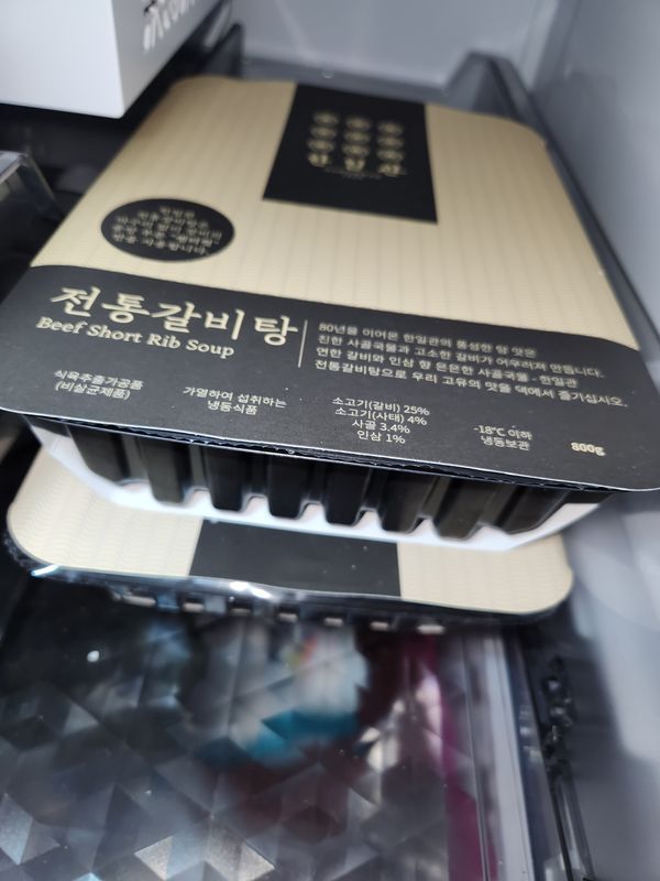 갈비탕 지금 받았습니다. 처음쓰는 후기가 좋은 내용이 아니네요. 갈비탕 3개중 1개의 종이 포장이 찢어져 있었는데 종이만 찢어졌겠지 하고 종이를 벗겼더니 비닐까지 찢어져 있네요. 반품 생각하다 얼어 있는 상태라 그냥 받기로 했는데 기분은 별로이고 다음에 안 시키면 되지 하는 생각이 드네요. 포장하실때 확인하시길요.