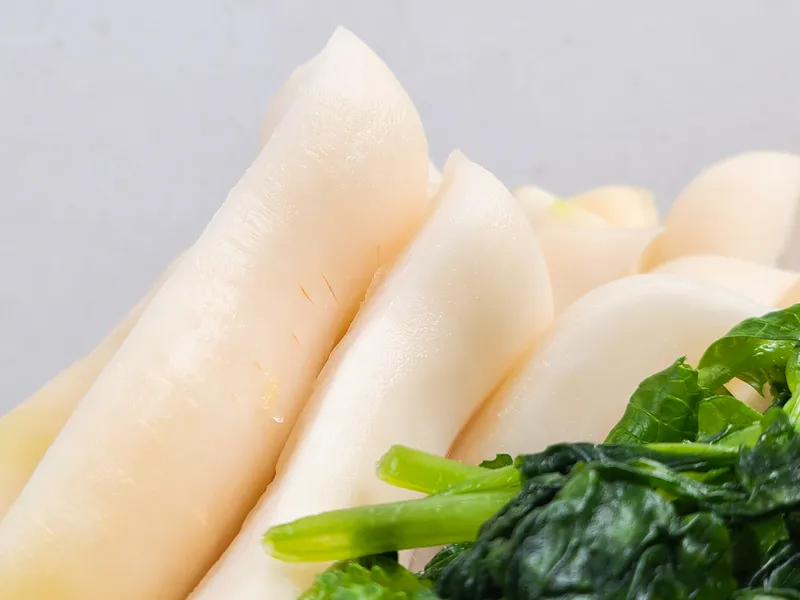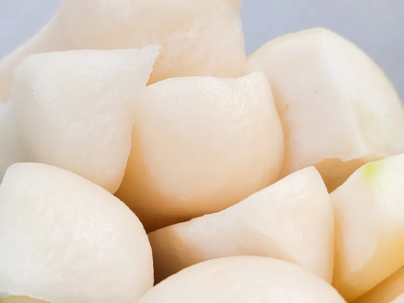 무 자체로도 달콤한 맛을 선사하는 겨울 무로 엄선했어요. 이미 절여져있어 번거로운 수고를 덜었답니다. 맛깔나는 양념에 버무려 아삭하고도 감칠맛나는 총각김치를 간편하게 만들어보세요.