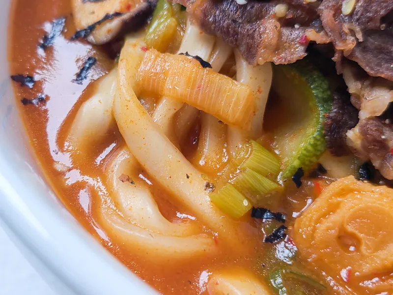 부드러운 소고기와 진한 장국물이 만나 담백하면서도 깊은 소고기 장칼국수