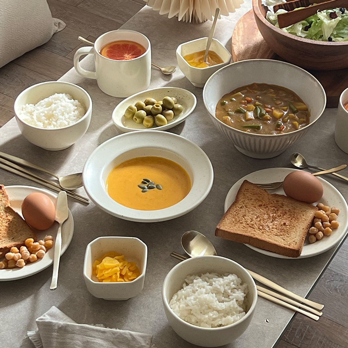 [국내생산] 히어 무광 코튼아이보리 2인 신혼 그릇세트 13P