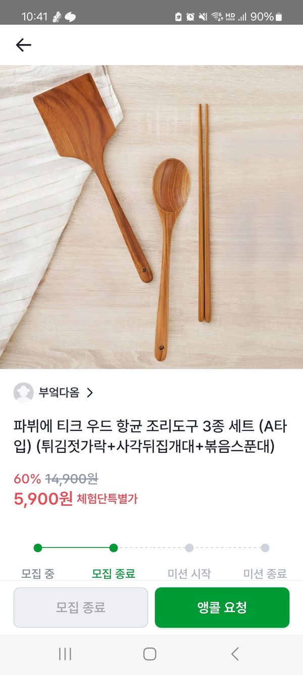저렴하게 나무조리도구 구매해서 좋아요! 집에 있는 낡은건 처분햇어용! 그리구 넓은 뒤집개 짱이에요!
