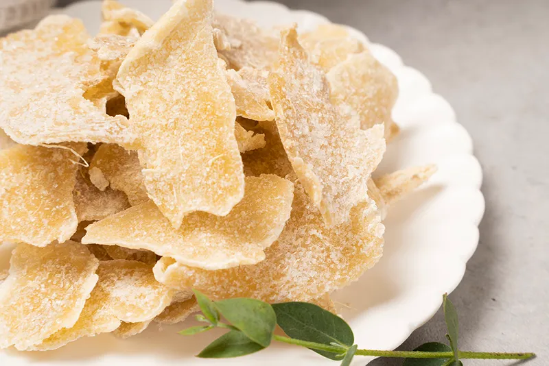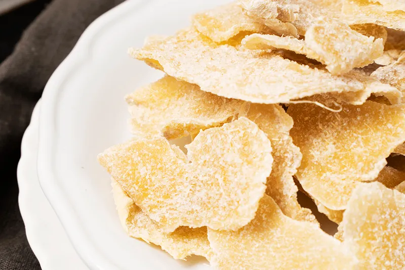 생강을 얇게 저민 후 설탕에 조려 적정시간 말린 편강입니다. 부드러운 식감의 편강을 즐겨보세요!