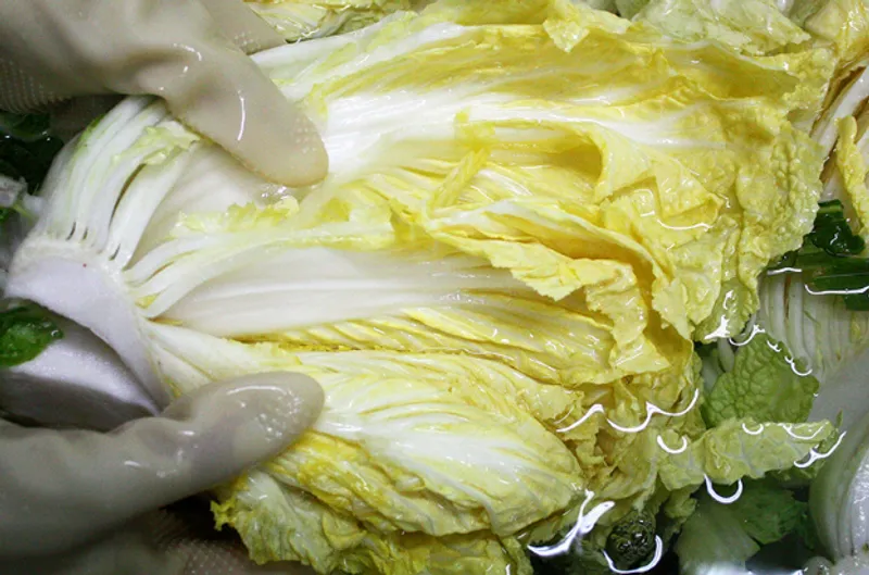 무르지 않는 아삭한 김치의 비법입니다. 청정 동해바다에서 추출한 해양 심층수로 배추를 4단으로 세척합니다.