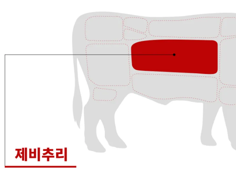 담백한 육향과 부드러운 식감이 탄성을 자아내는 제비추리입니다. 워낙 육즙이 풍부하고 육향이 좋아 한입 먹는 순간 엄지 척하게 만드는 부위입니다. 지방이 적고 살코기가 많아 먹어도 먹어도 질리지 않습니다!
