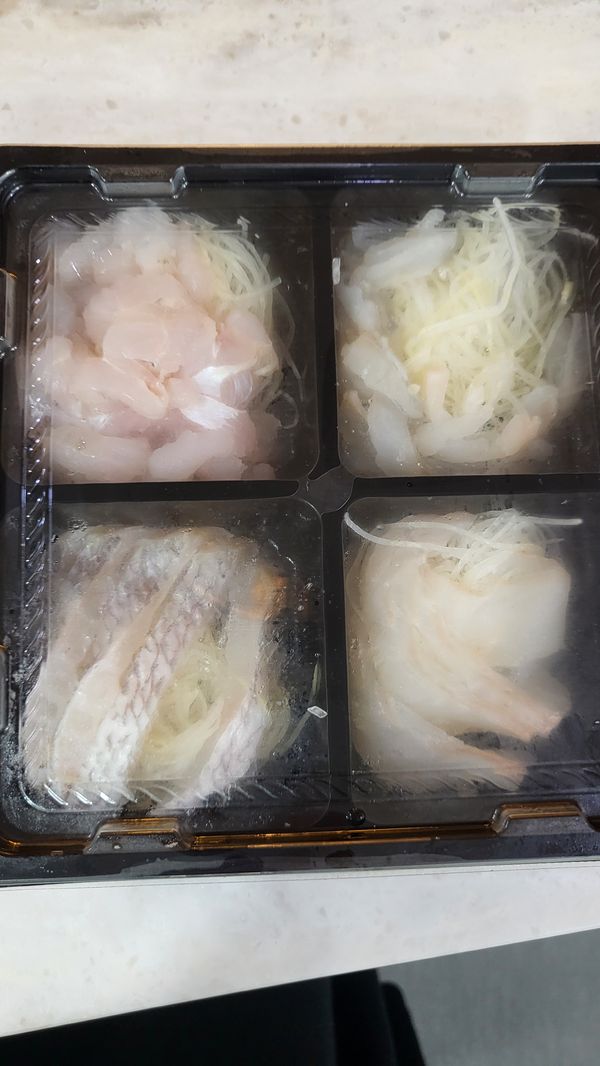 새꼬시만 있고 구성이 별로였어요. 뼈가 많이 씹혀 먹기 거북하고 질감도 별로였어요. 막썰었다는 느낌이라 가족이 추가로 먹기엔 비추천입니다.