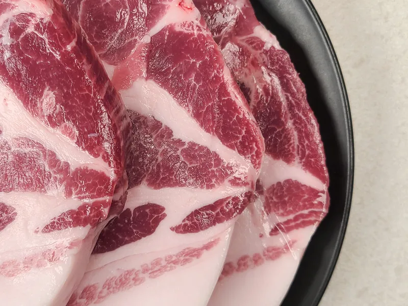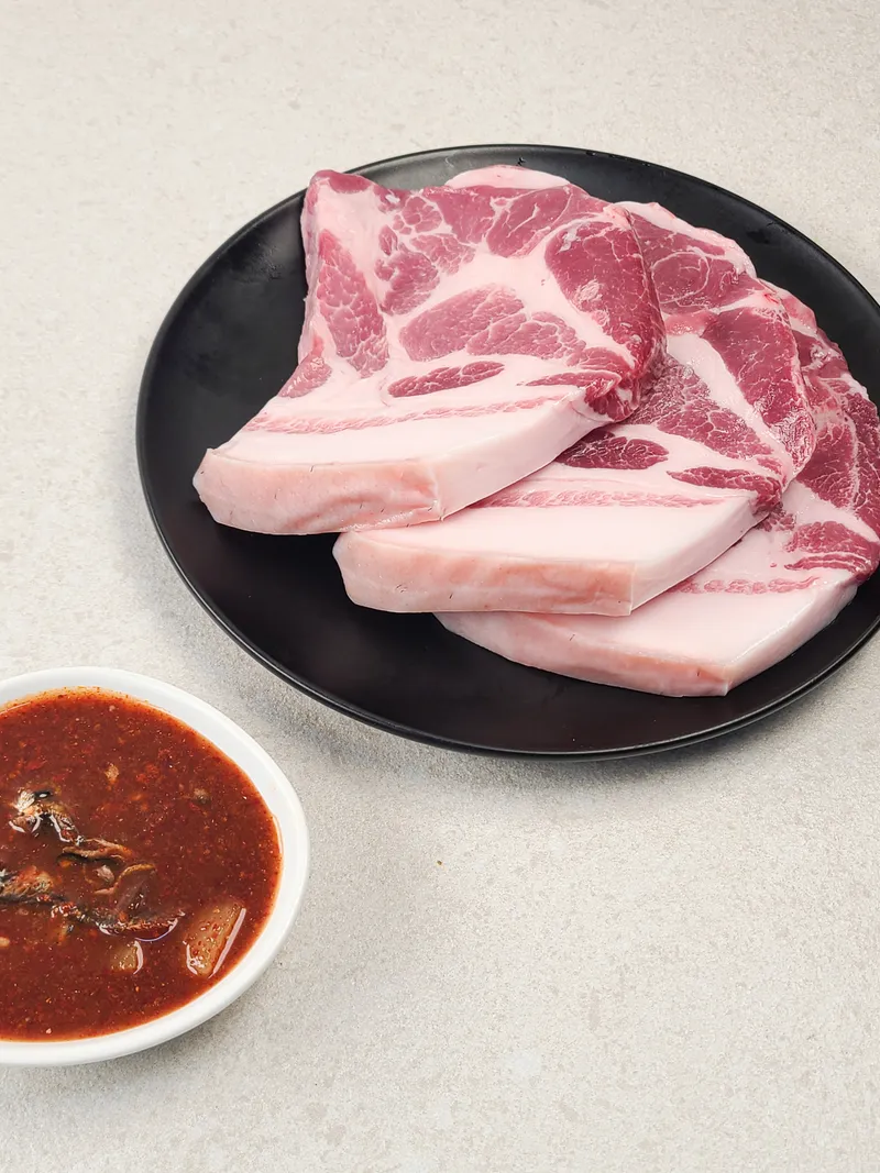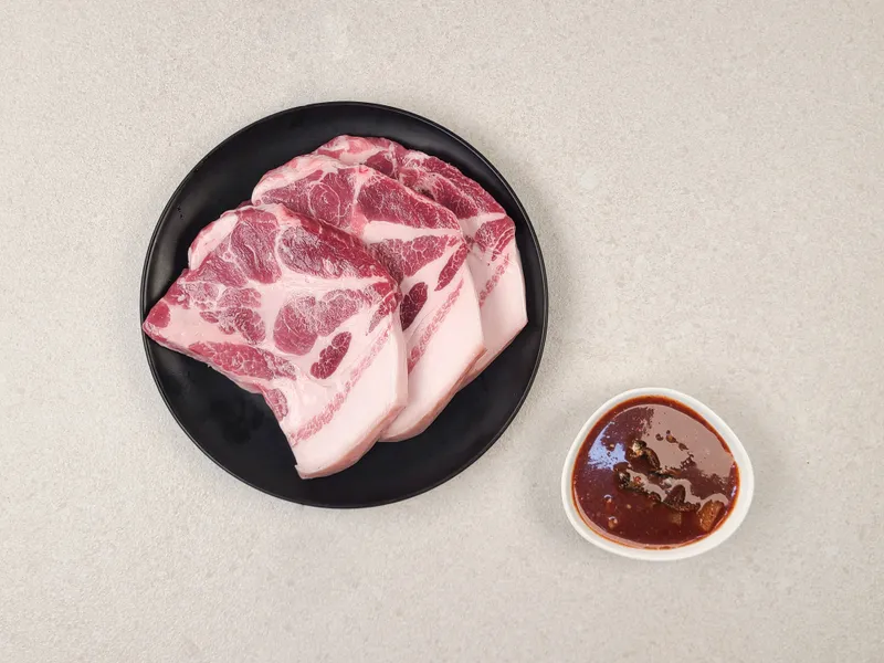 도톰하게 썬 목살에 지방이 적절히 섞여 있어