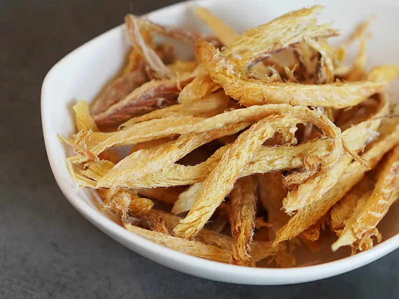 술 안주로 바로 드실 수 있게 깔끔하게 손질한 순살 먹태입니다. 가시·지느러미 등 불순물을 제거한 다음 먹기 좋은 크기로 찢었습니다. 최상의 원물을 사용하여 짜지 않고 담백합니다. 속살은 포슬포슬하고 부드러운 식감을 자랑합니다.