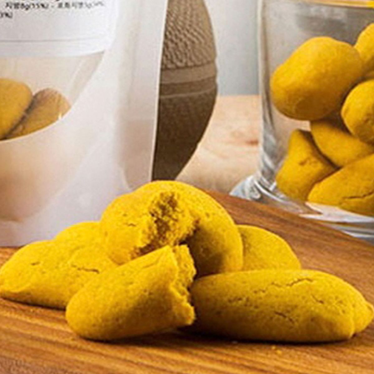 국산 단호박가루를 듬뿍 넣은 단호박쿠키입니다. 씹을수록 단호박의 은은한 단맛이 느껴집니다.