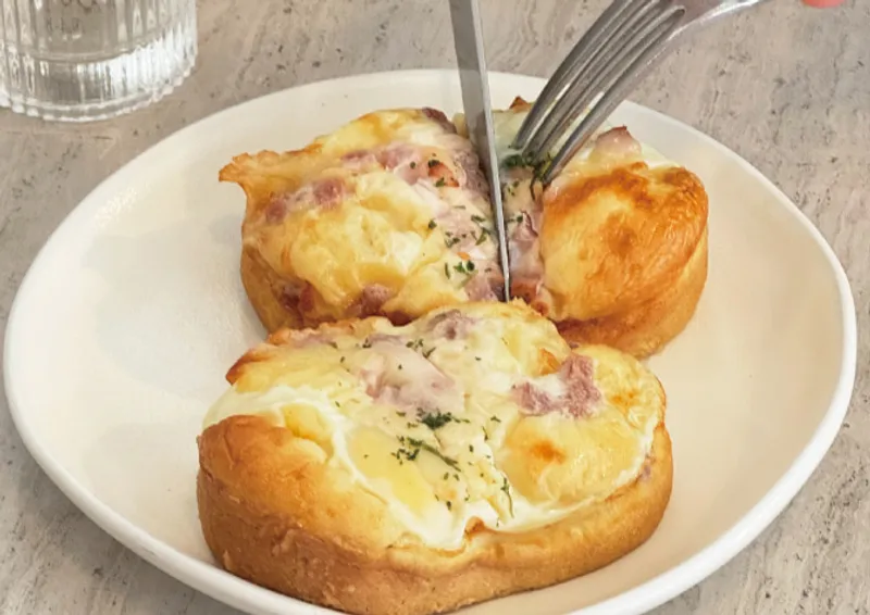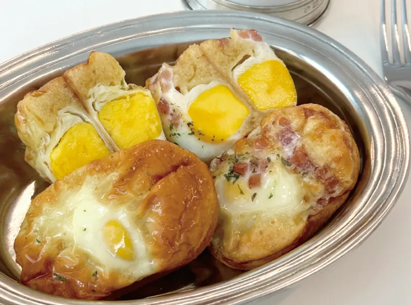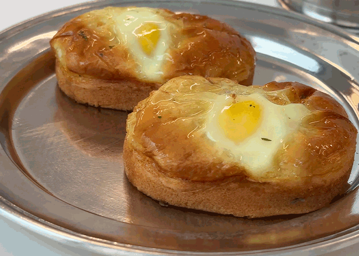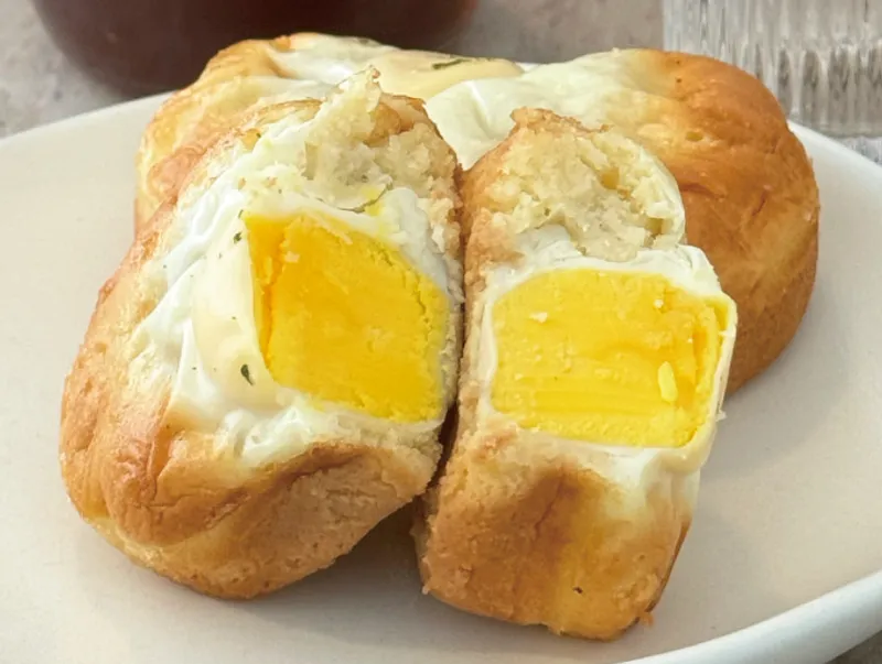 스모크햄과 모차렐라 치즈까지 얹어 한층 더 푸짐해진 계란빵입니다. 식감까지 모조리 챙긴 계란빵을 찾으신다면 햄치즈계란빵!