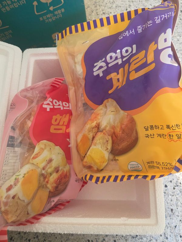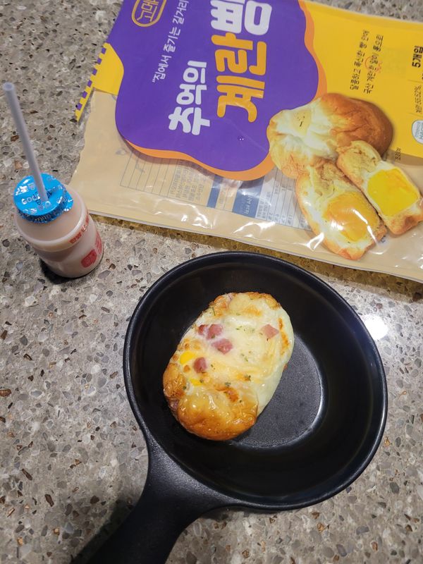 전자레인지 또는 에어프라이어에 돌려 노릇노릇하게 구워진 계란빵을 케첩에 찍어 드셔보세요! 새콤달콤한 케첩과 고소한 계란빵의 조합이 맛있답니다.
