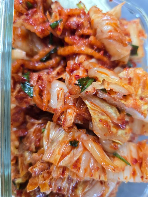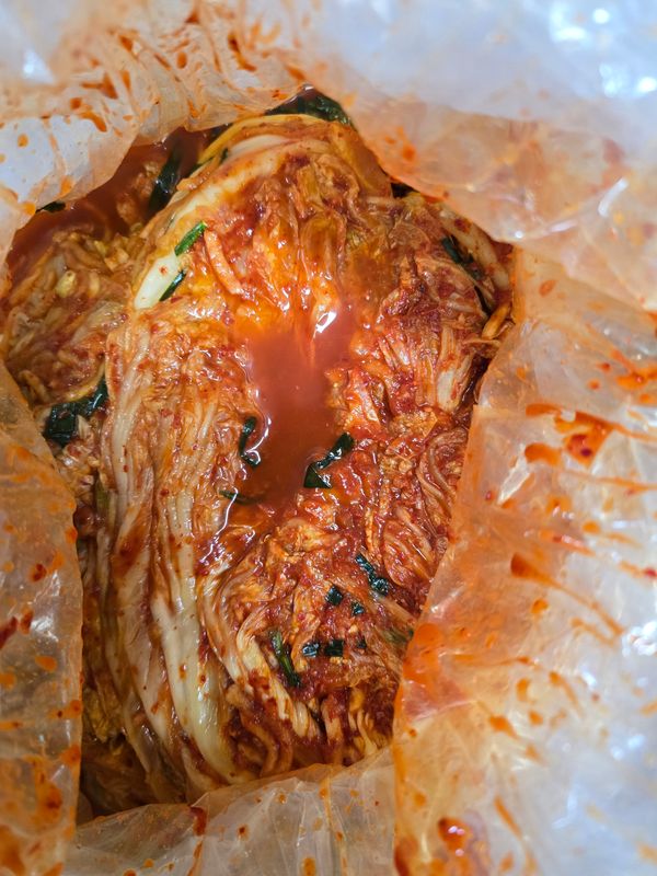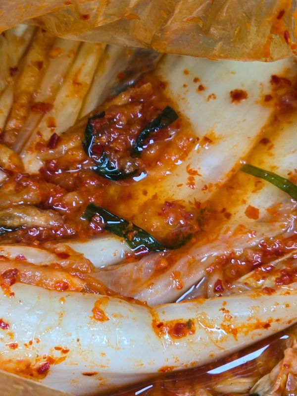 바로 담근 포기김치인듯 짜지않고, 아삭함과 익히지 않은 맛이 좋아요!