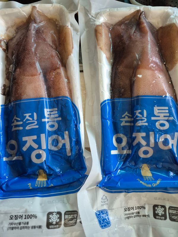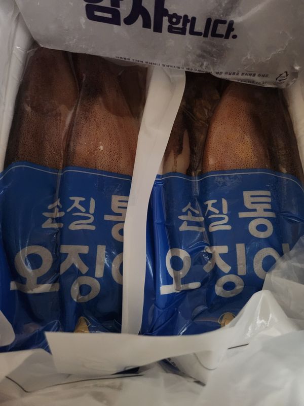 날씨가 더워 오징어 다 녹아 배송될까 걱정했는데 늦은시간인데 오징어 얼어 있어요 포장 신경쓰신거 감사해요 오징어 싱싱해보입니다 맛있을것 같아요