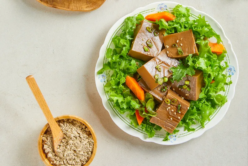 우리 조상들이 물려준 제조 기법을 응용하여 본사가 보유하고 있는 특수 기술로 제조, 개발한 결과 묵의 불쾌취와 자극성을 없앤 명품 춘향골 묵을 개발하여 공급하게 되었습니다. 엄선된 식재료를 주원료로 하여 특수 제조기술로 만든 지리산맑은물춘향골(영)의 고품격 명품 묵입니다.