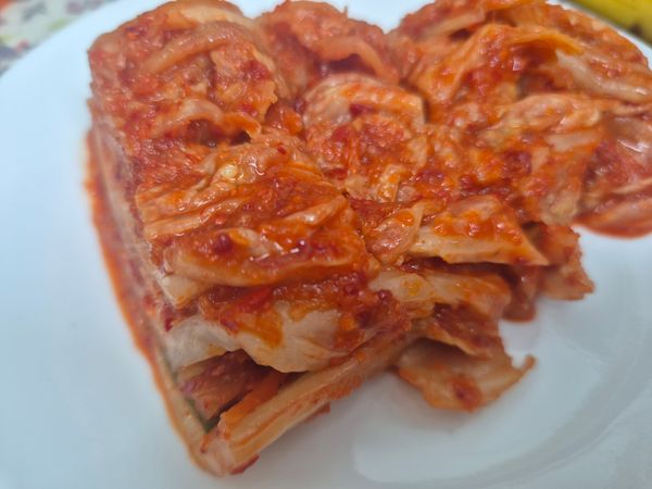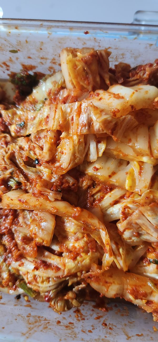 양념이 아주 잔해서 깊은 맛이 나네요. 아직 익지 않아서 좀 짠 맛이 나지만 익으면 괜찮을 것 같은대 전라도식 김치라 그런지 양념만 보이고 푸른색은 하나도 안 보이는 것이 완전 전라도식 같아요