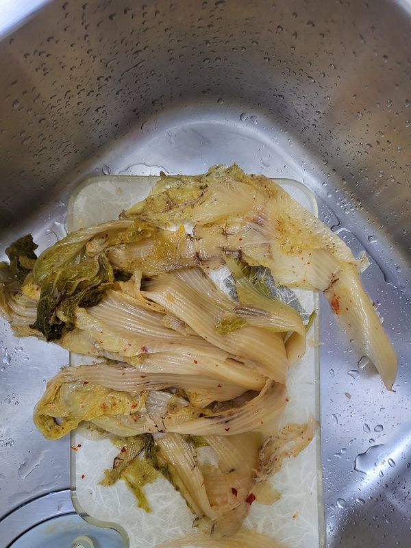 너무 익어서, 너무 짜서 씻었는데..상태가 이 정도일 줄이야..그냥 먹을때는 조금 병든 배추인가? 했는데 그건 아닌것 같네요. 사장님 너무 하십니다.