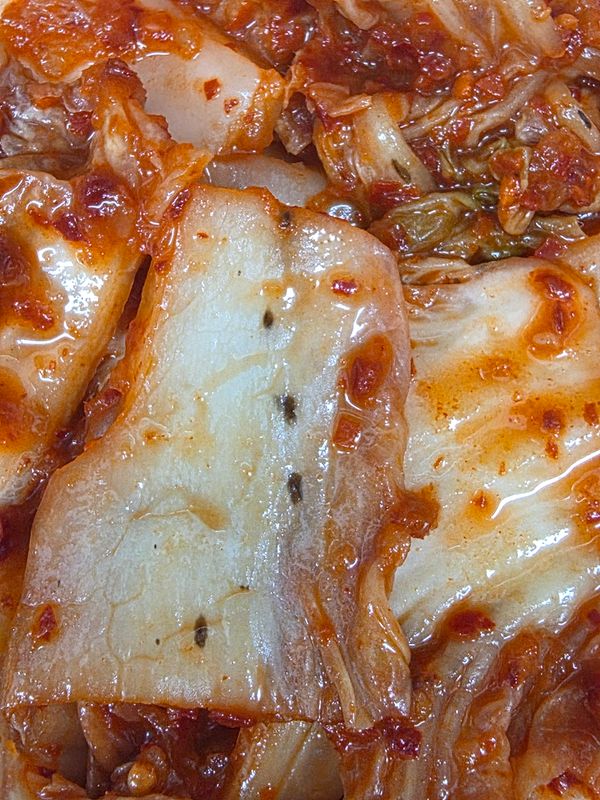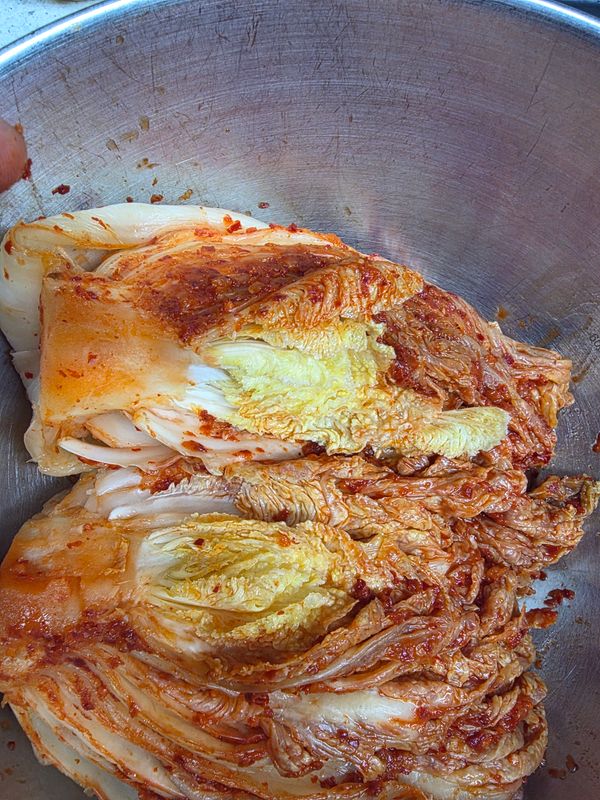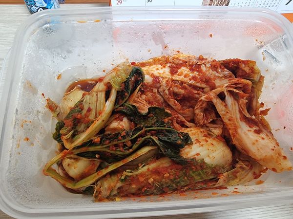점박이 배추도 아니고 이건 뭐........ 절임 상태도 대충 엉망이고.. 버무림 상태도 엉망이고.. 지금까지 먹은 김치 중 최악.