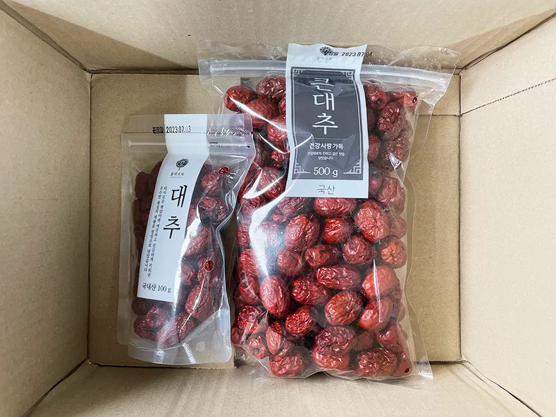 알이 굵고 깨끗해 대추차로 끓여 드셔도 좋고 백숙이나 삼계탕 등에 넣어 드시기도 좋습니다.