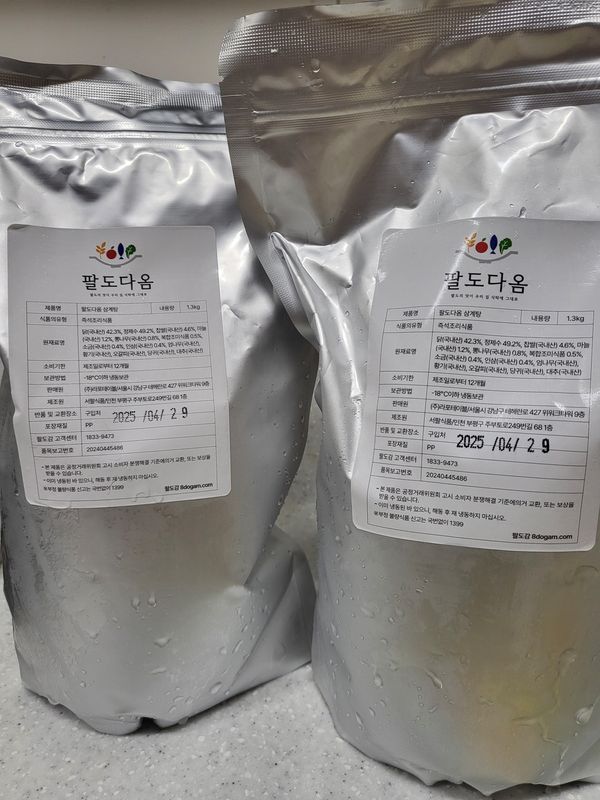 손 많이 가는 삼계탕을 편하게 맛볼수 있어서 좋았습니다 찹쌀밥도 많이 들어있어요 고기가 얼었다 녹아서 그런지 약간 질겨요 맛있게 잘먹었습니다~^^