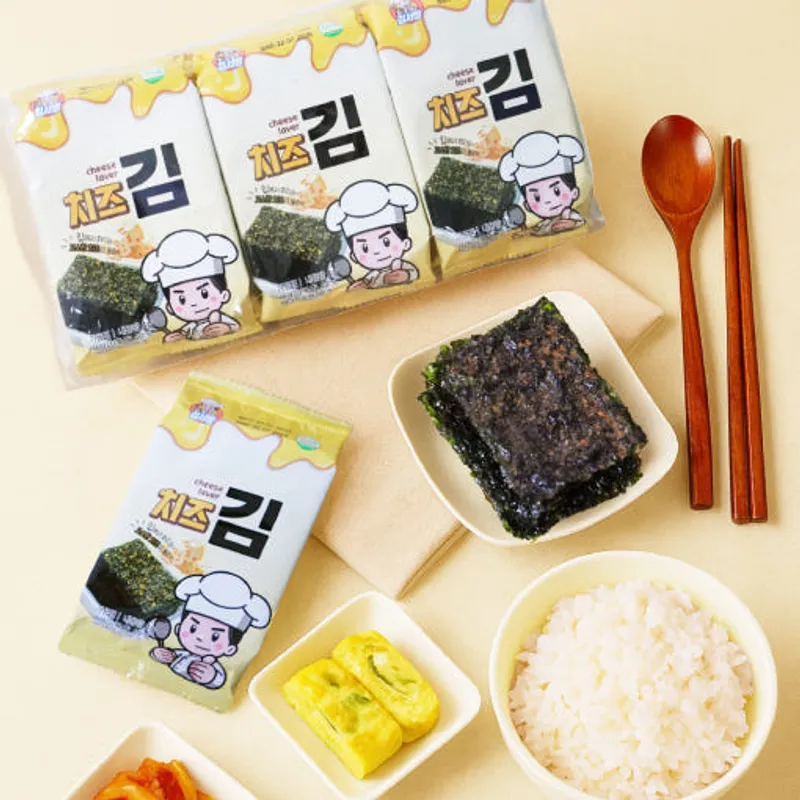 김을 좋아하는 어른들부터 치즈를 사랑하는 아이들까지, 남녀노소 호불호 없이 모두가 좋아하는 치즈 김이에요! 재래김의 바다향과 체다치즈의 녹진한 맛이 만나 누구에게든 사랑받는 완벽한 맛을 완성했습니다. 아이들 간식으로도 좋고, 어른들 술안주로도 훌륭하며, 도시락 반찬이나 밥상 위 기본 반찬으로도 제격이에요.