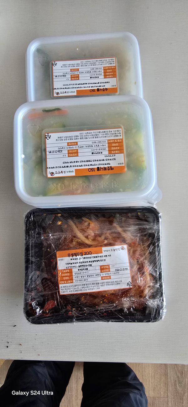 반찬은 다 맛있어요 아쉬운건 무채나물의 국물이 넘쳐 밖으로 새어나와 박스가 지저분하게 배송되었어요 나물들은 정말 맛있습니다