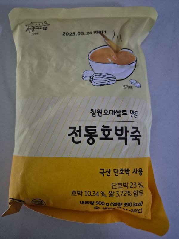 국내산 호박, 쌀, 찹쌀, 천일염 사용했고, 편리한 파우치 포장의 신선도는 높였어요. 황금빛 속살의 단호박, 호박을 부드럽게 갈아 만든 전통 호박죽으로 따뜻한 아침식사 어떠세요?