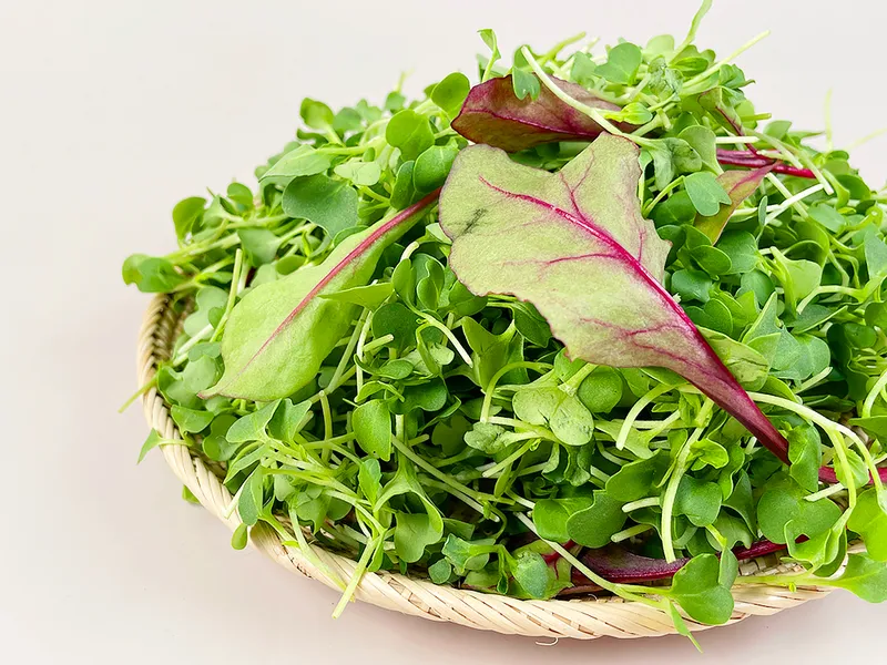 어린잎 채소는 청경채, 비트, 비타민의 어린 싹을 말합니다. 상큼하면서도 아삭아삭해 입맛을 돋우어 주고 각종 영양소가 풍부합니다.