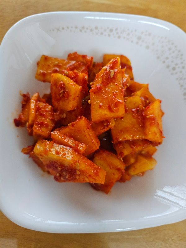 지난번 보다는 덜 싱싱하고 흙도 많이 묻어 지저분했지만,염려와는 달리 맛있게 먹고 있어요.깍두기를 만드니 정말 맛있네요