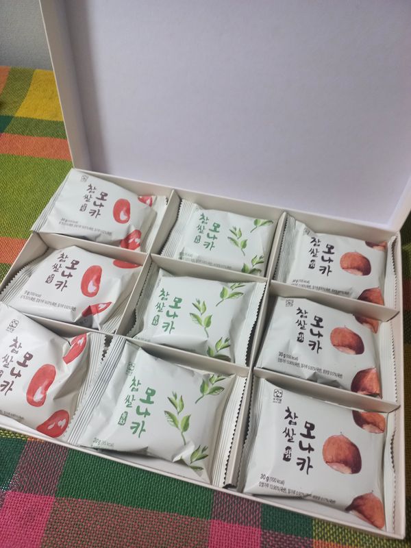 찹쌀모나카 옛생각이나서 주문했는데 안에 앙금과찹쌀이 적절하게 배합되어 맛있게 먹었습니다.