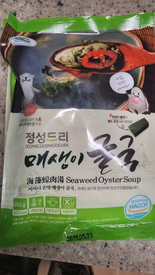 그런데 2봉투를 한번에 끓이고나서 먹을려구봤더니 굴이 총6개들어있어서 놀랬어요.