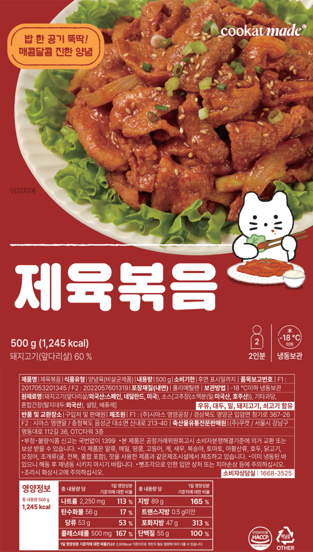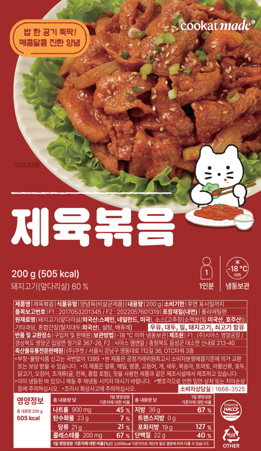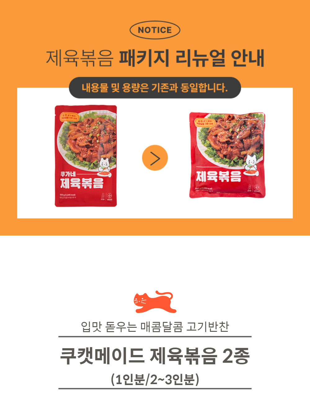 (G)쿠캣 제육볶음 200g (1인분) X 6팩