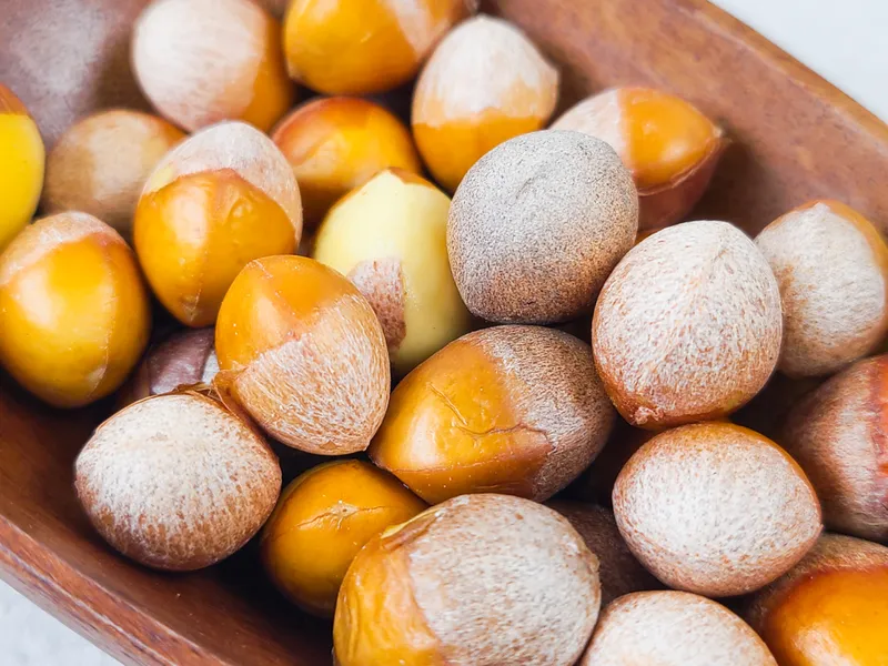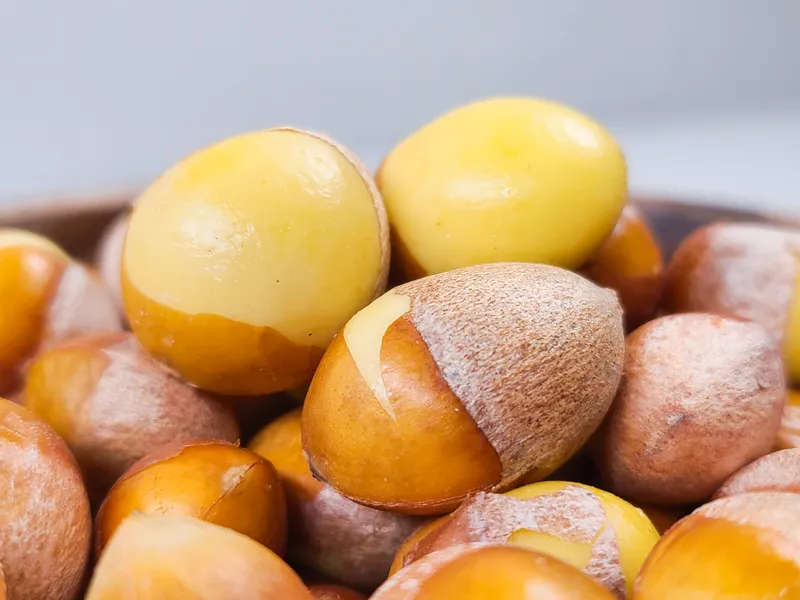 딱딱한 겉껍질을 제거한 공주 생 깐은행