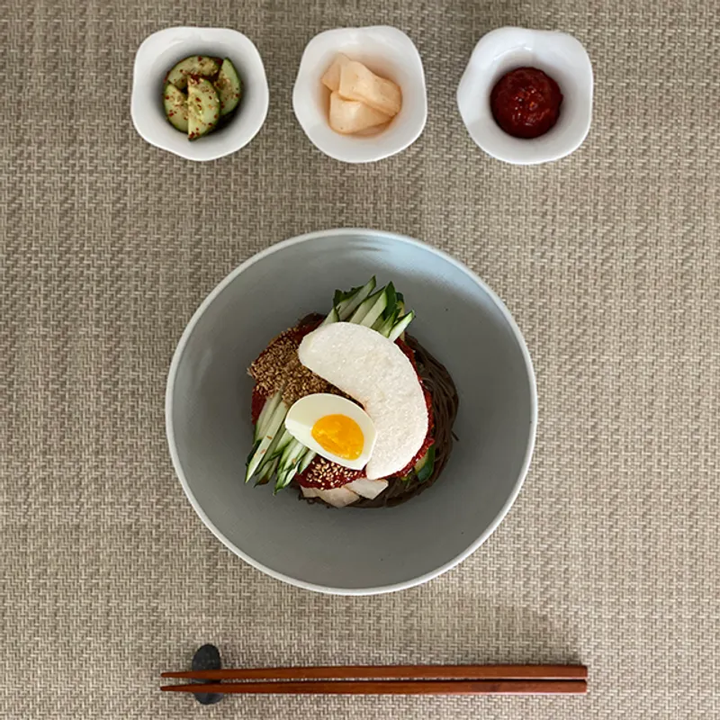 1. 드시기 전 실온에서 2시간 해동 시킨 면을 가닥가닥 잘 풀고 대나무잎을 함께 넣어 팔팔 끓는 물에 70-80초(1인분 기준) 삶아 주세요. 2. 삶은 면을 차가운 물에 여러 번 행궈 준 후 물기를 꼭 짜서 그릇에 놓아주세요. 대나무 잎은 드시기 전 빼주세요. 3-1. 물냉면: 육수 양념장, 깨소금, 무김치를 부어 주세요. 3-2. 비빔냉면: 육수를 1/4 가량 넣고 양념장, 참기름, 깨소금, 무김치를 넣어주세요.