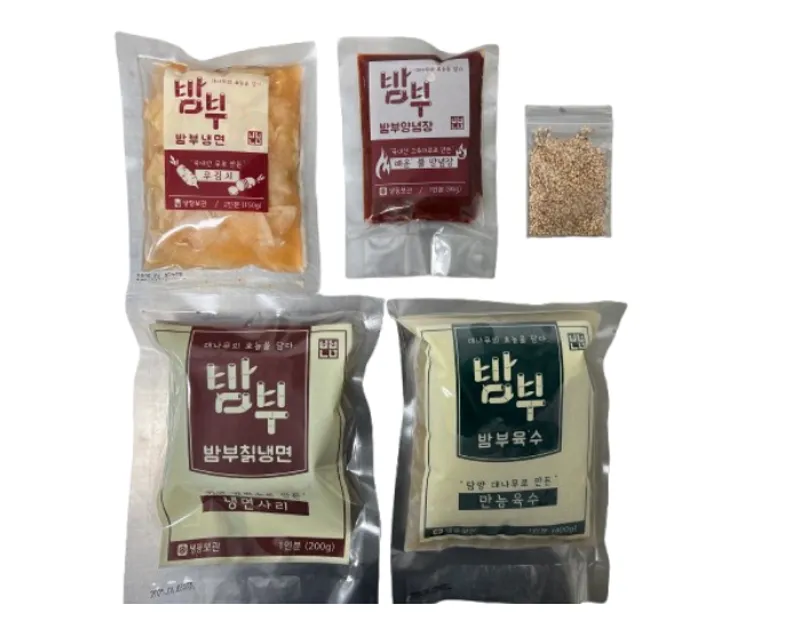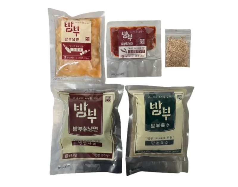 냉면 육수 400g*2팩+냉면 사리 200g*10팩+비빔 양념장 20g*10팩+무김치 5팩+깨소금