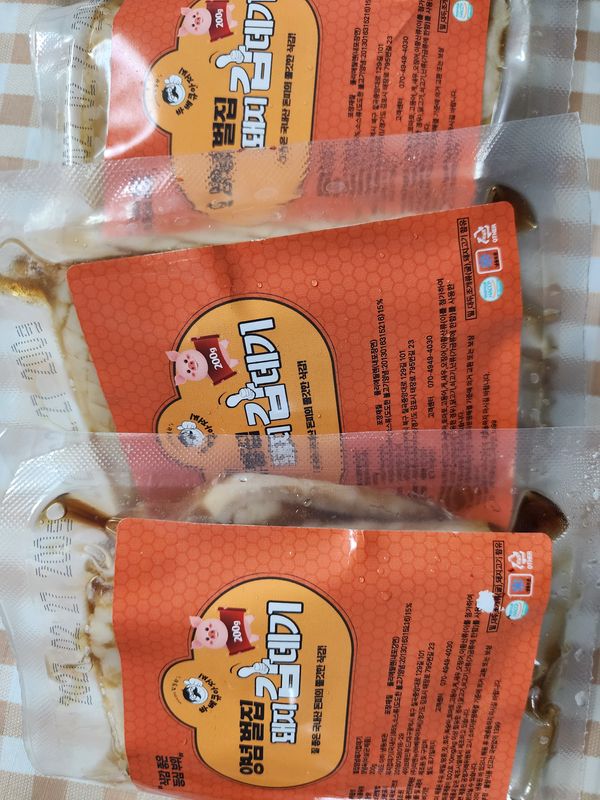 양념에 제워져서 오는 거라 구워먹으니 아이가 좋아했어요 저희집은 초등아이가 돼지껍데기를 좋아합니다 강추합니다
