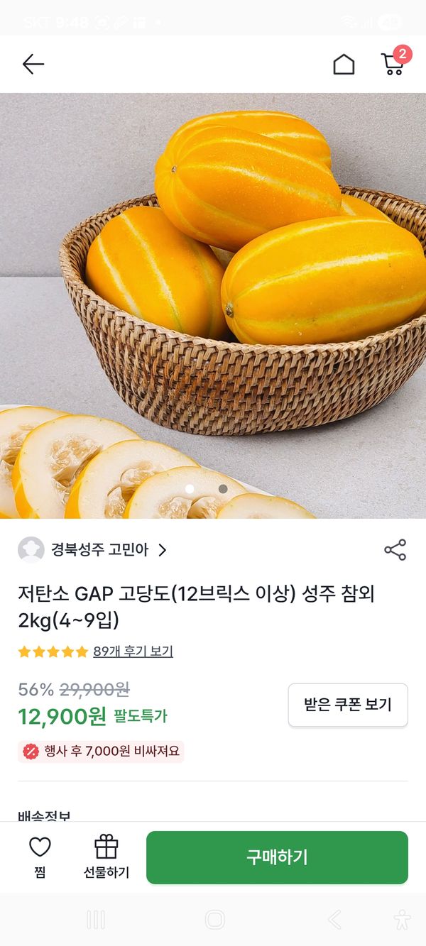 옵션: 성주 참외 2kg(4~9입)